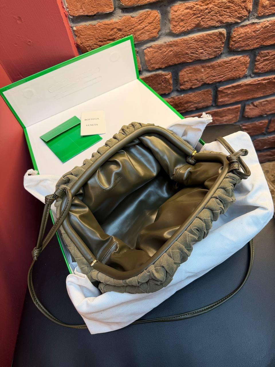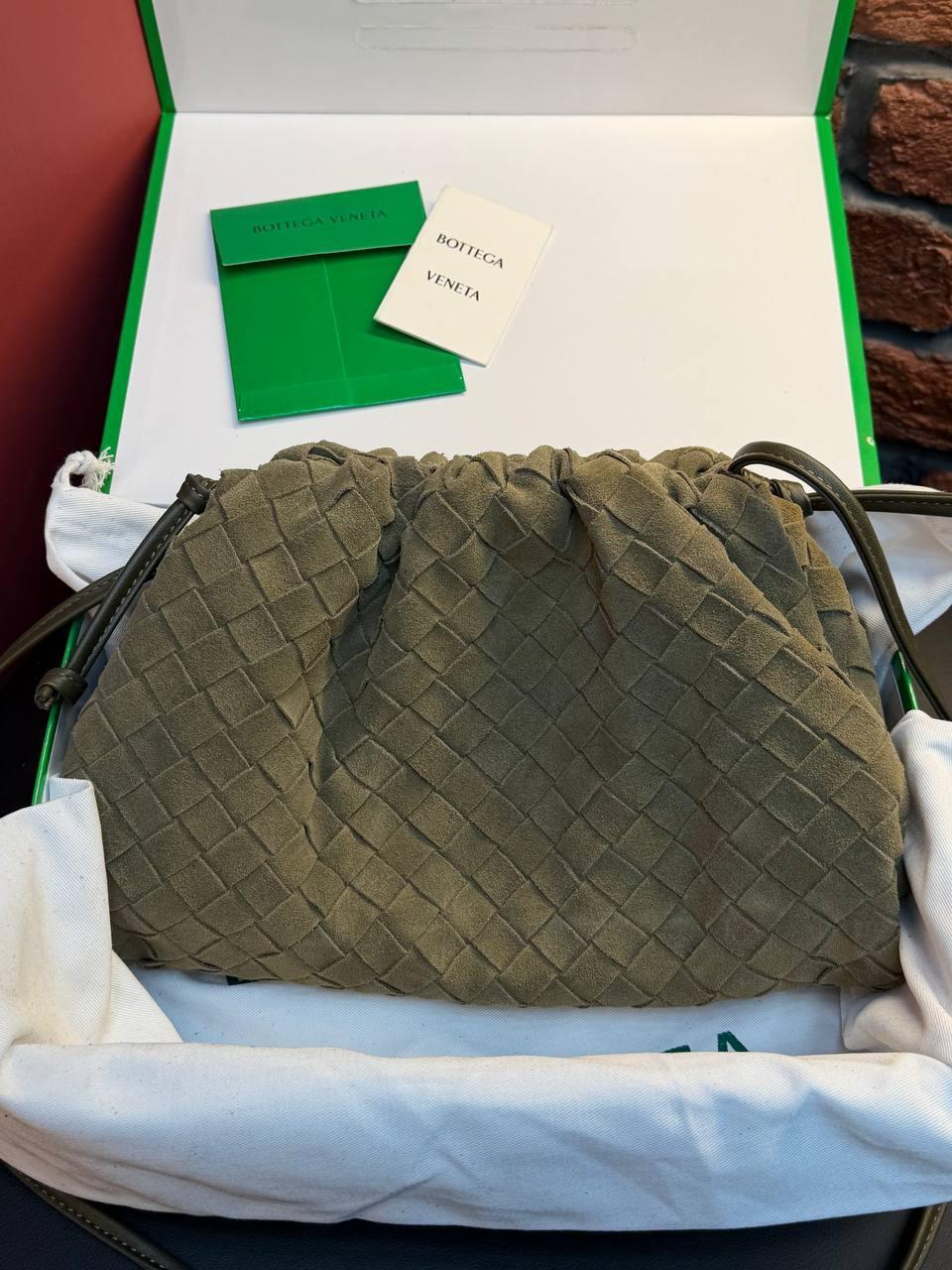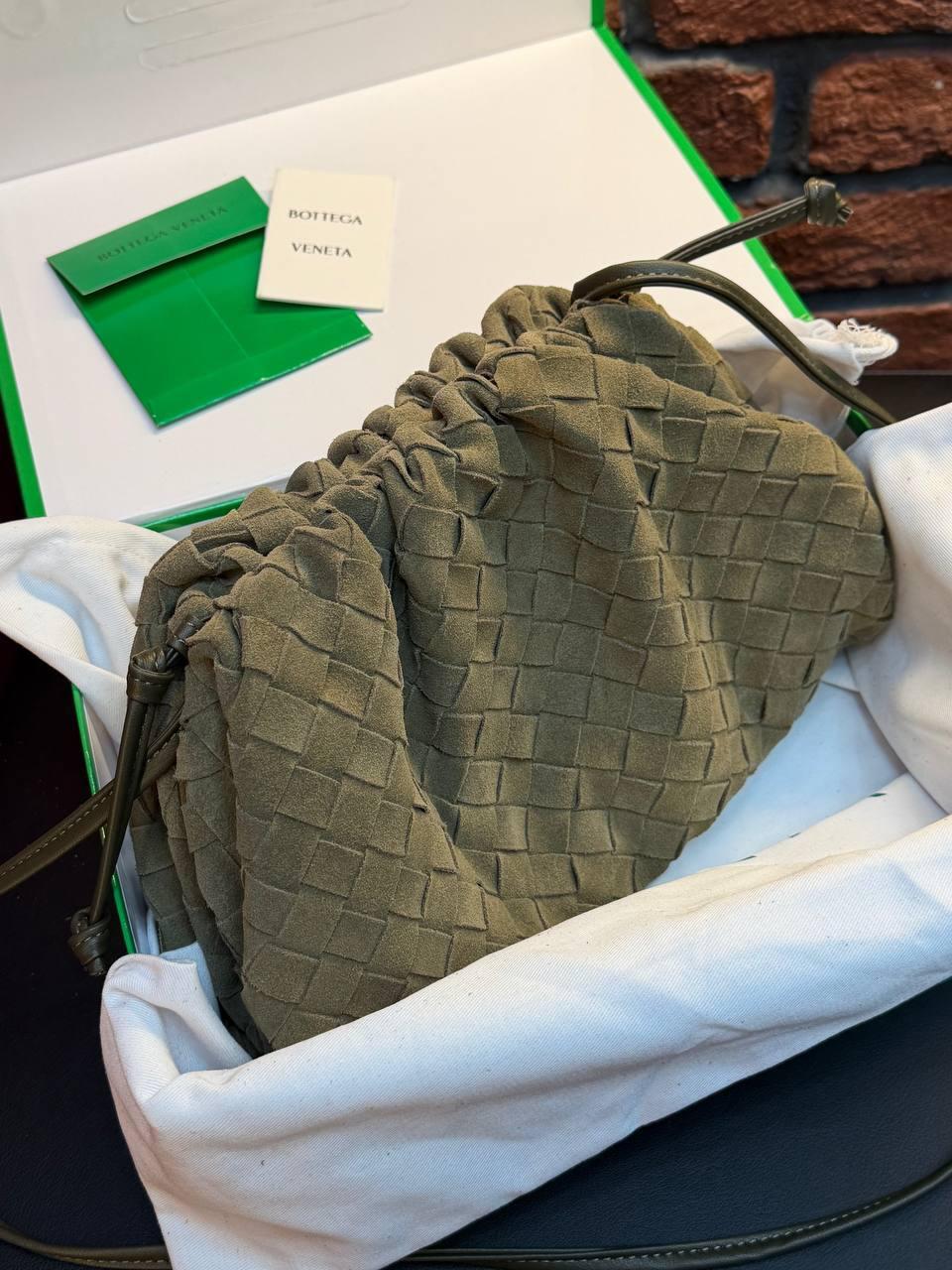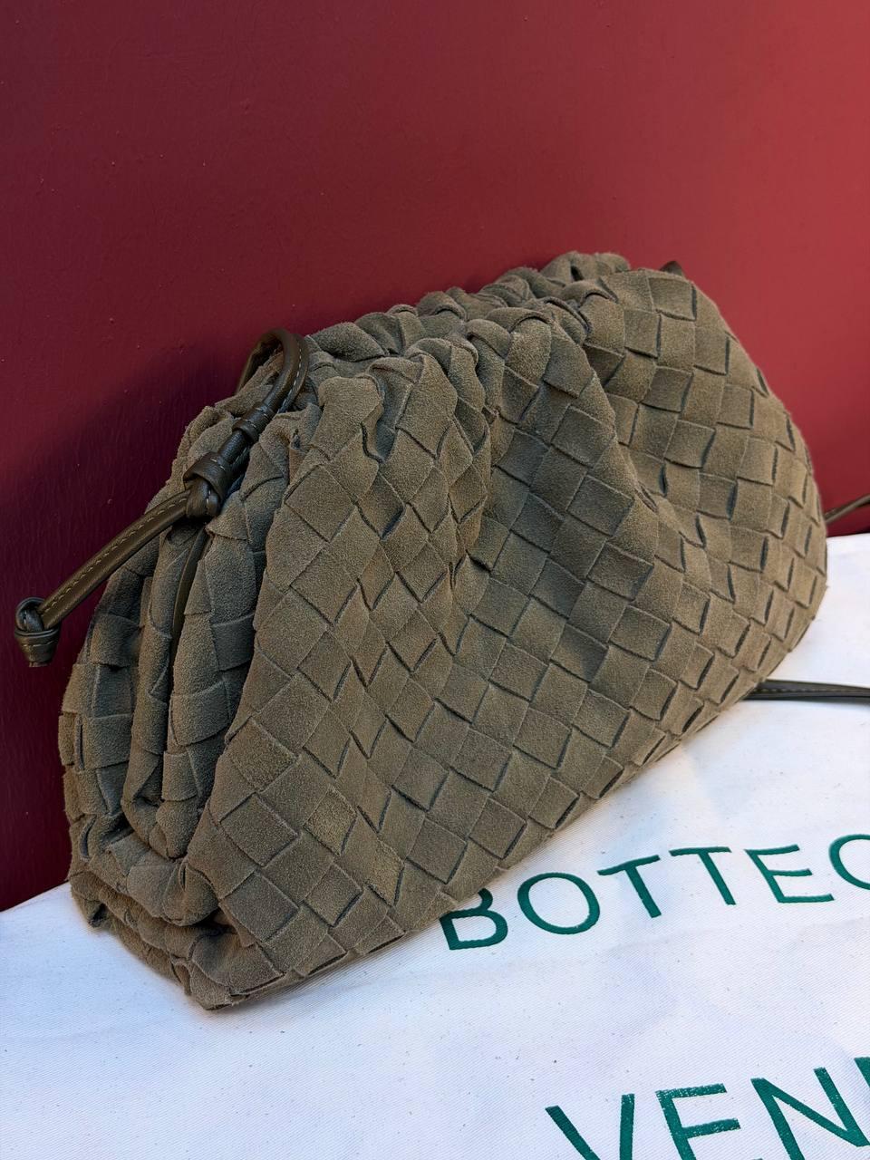 Bottega Veneta Suede Woven Shoulder Bag “Cypress”
