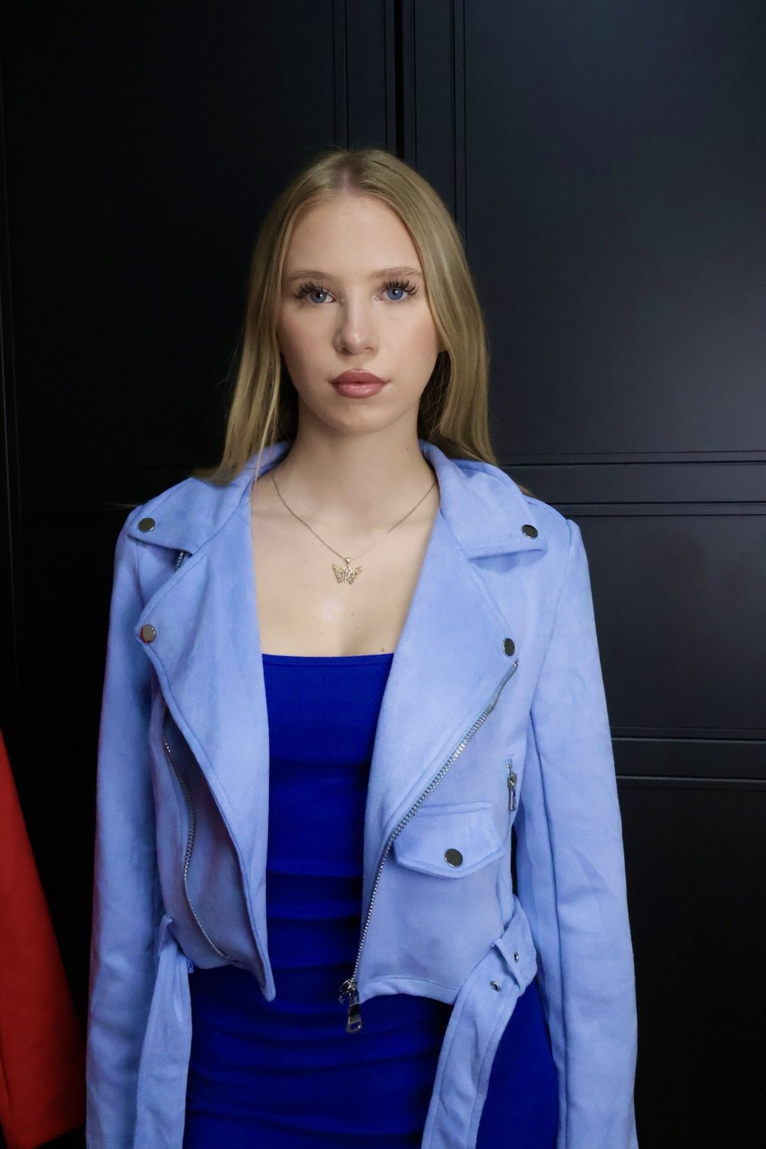 C’est Monique biker jakna Suedette Pastel Blue