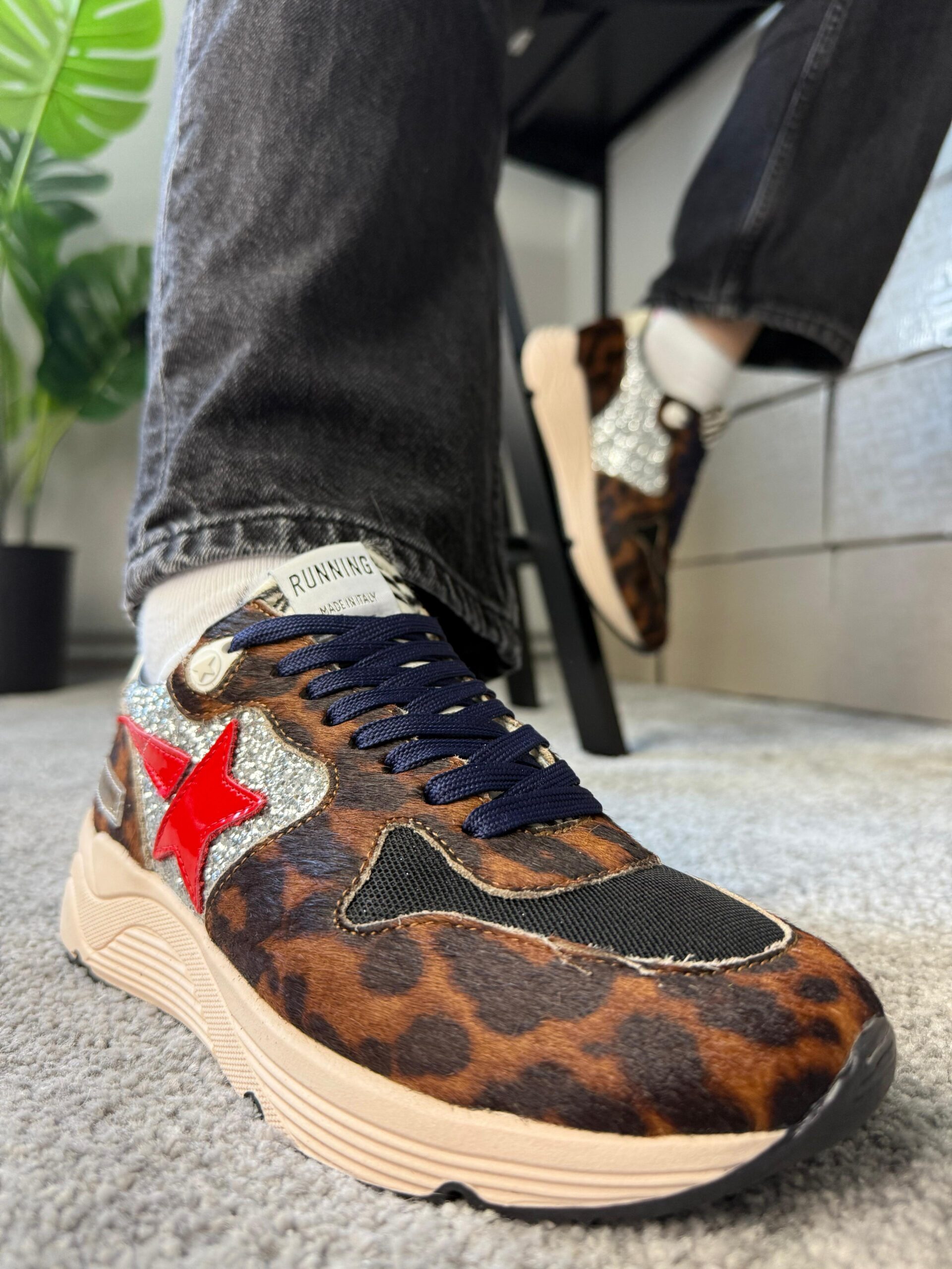 Golden Goose Running Sole Leopard / Red Star