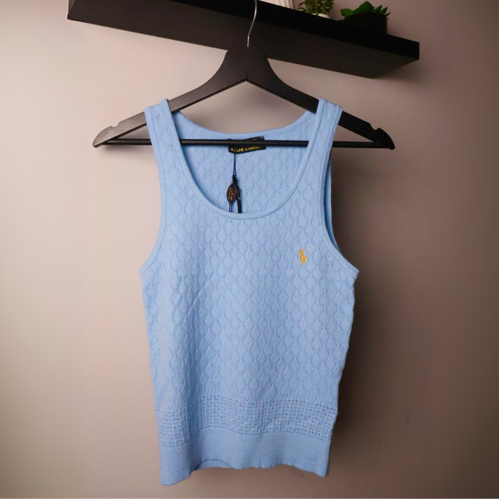 Majica Polo Ralph Lauren bez rukava, pletena, svijetlo plava