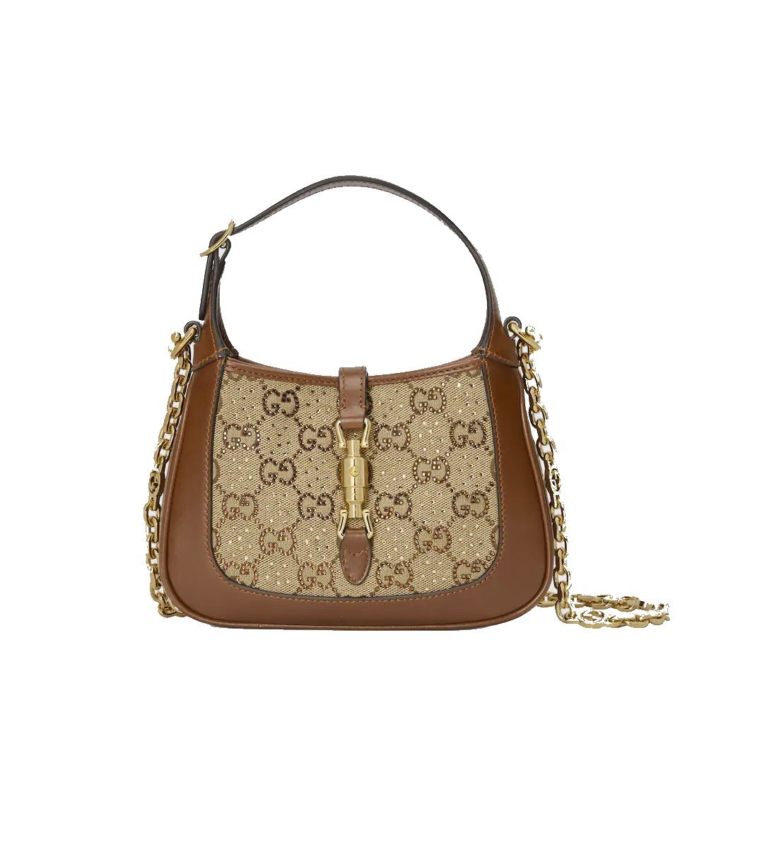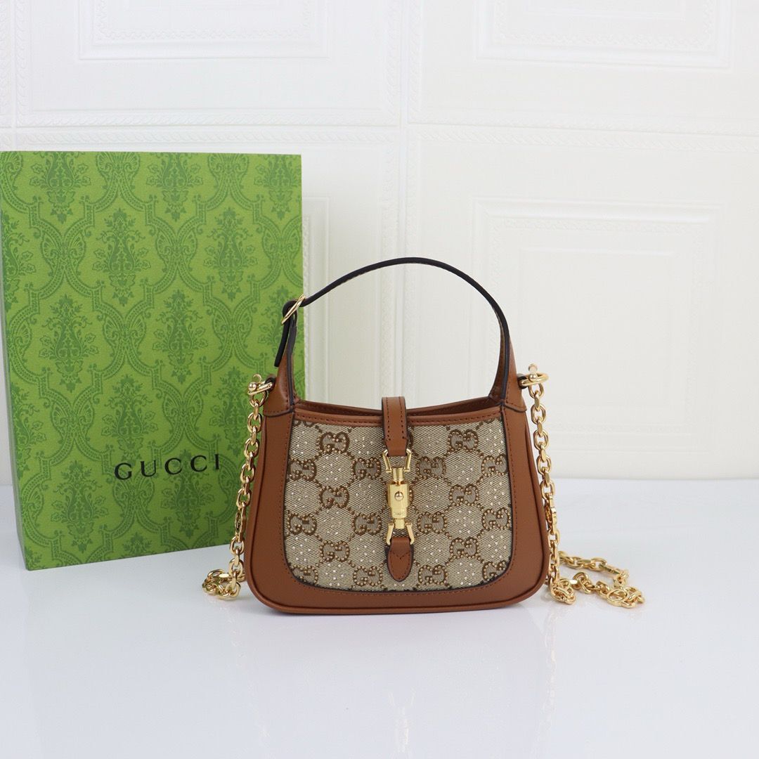 Torba Gucci Jackie 1961 crystals in Beige Brown GG / MINI